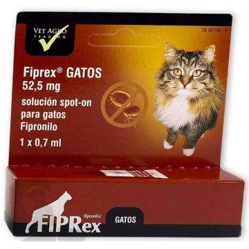 Solução para unção punctiforme para gatos, à base de fipronil. FIPREX é uma linha de produtos desenvolvida para combater carrapatos, pulgas e piolhos em cães e gatos.