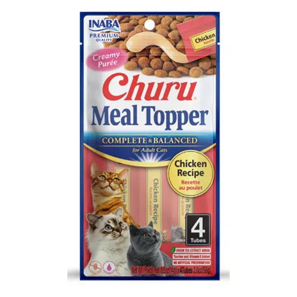 Churu Cat Meal Topper Receita de Frango é um suplemento alimentar cremoso, feito com frango real. Ideal para melhorar a palatabilidade, hidratação e nutrição do alimento seco. Sem conservantes nem grãos.