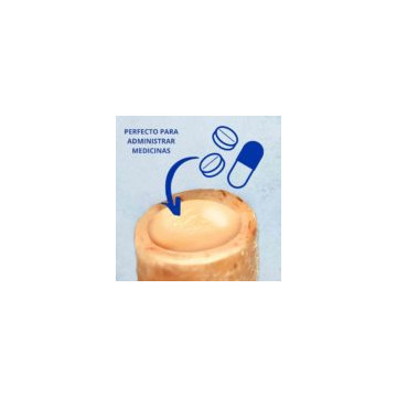 Snack com textura dupla que combina uma suave massa assada sem cereais com um cremoso recheio Churu, ideal para camuflar um comprimido sem que os gatos percebam.