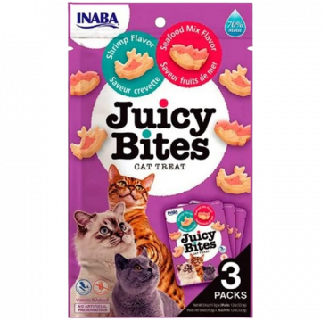 Snack com textura dupla que combina uma suave massa assada sem cereais com um cremoso recheio Churu, ideal para camuflar um comprimido sem que os gatos percebam.