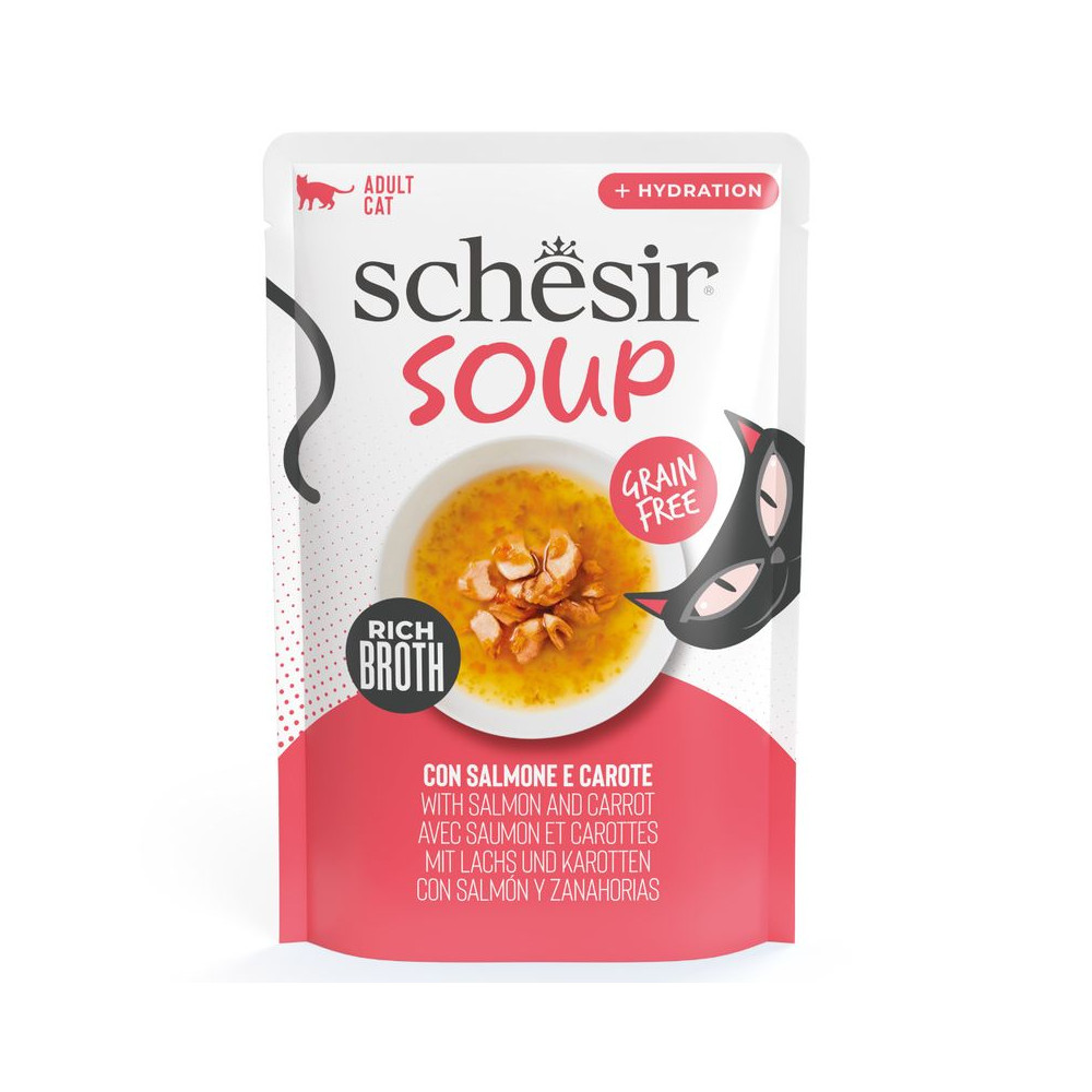 Semelhante a Schesir Comida Húmeda Gato Soup Salmón Rosado y Zanahorias