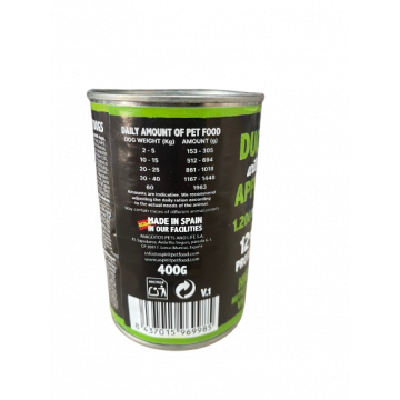 As latas Alpha Spirit Peru e Coentro são um alimento complementar para cães adultos de todos os tamanhos e raças.
