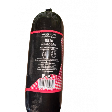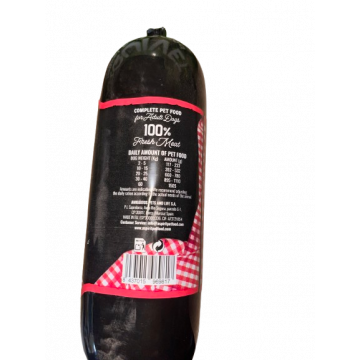 Um delicioso patê feito de carne picada para cães adultos de todas as raças.