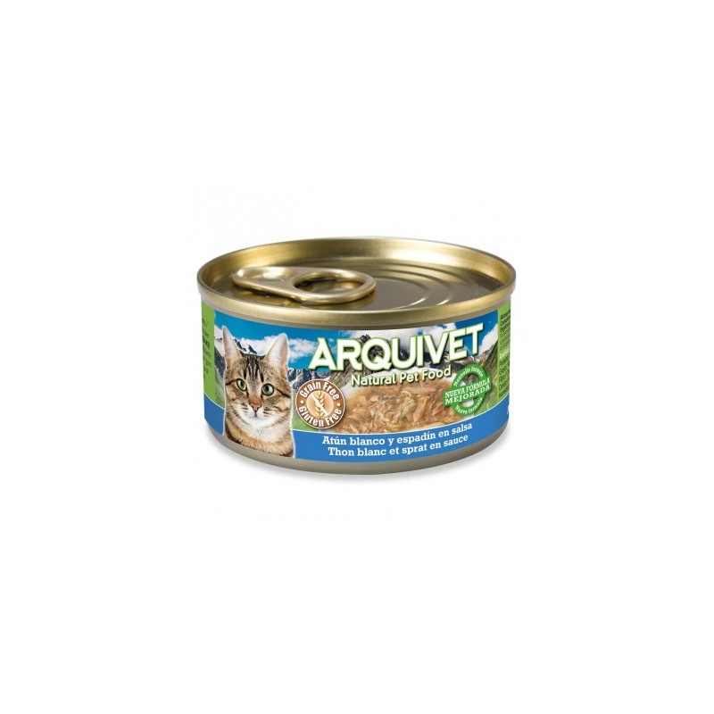 Arquivet Atum Branco e Espadilha em Molho é um alimento complementar saboroso e nutritivo que fornece líquido aos gatos, evitando assim a desidratação.