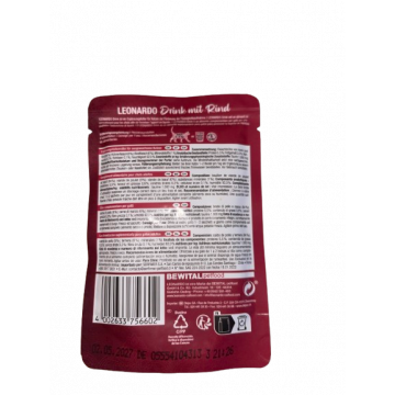 Dieta húmida completa de Leonardo para gatos adultos, rica em fígado.