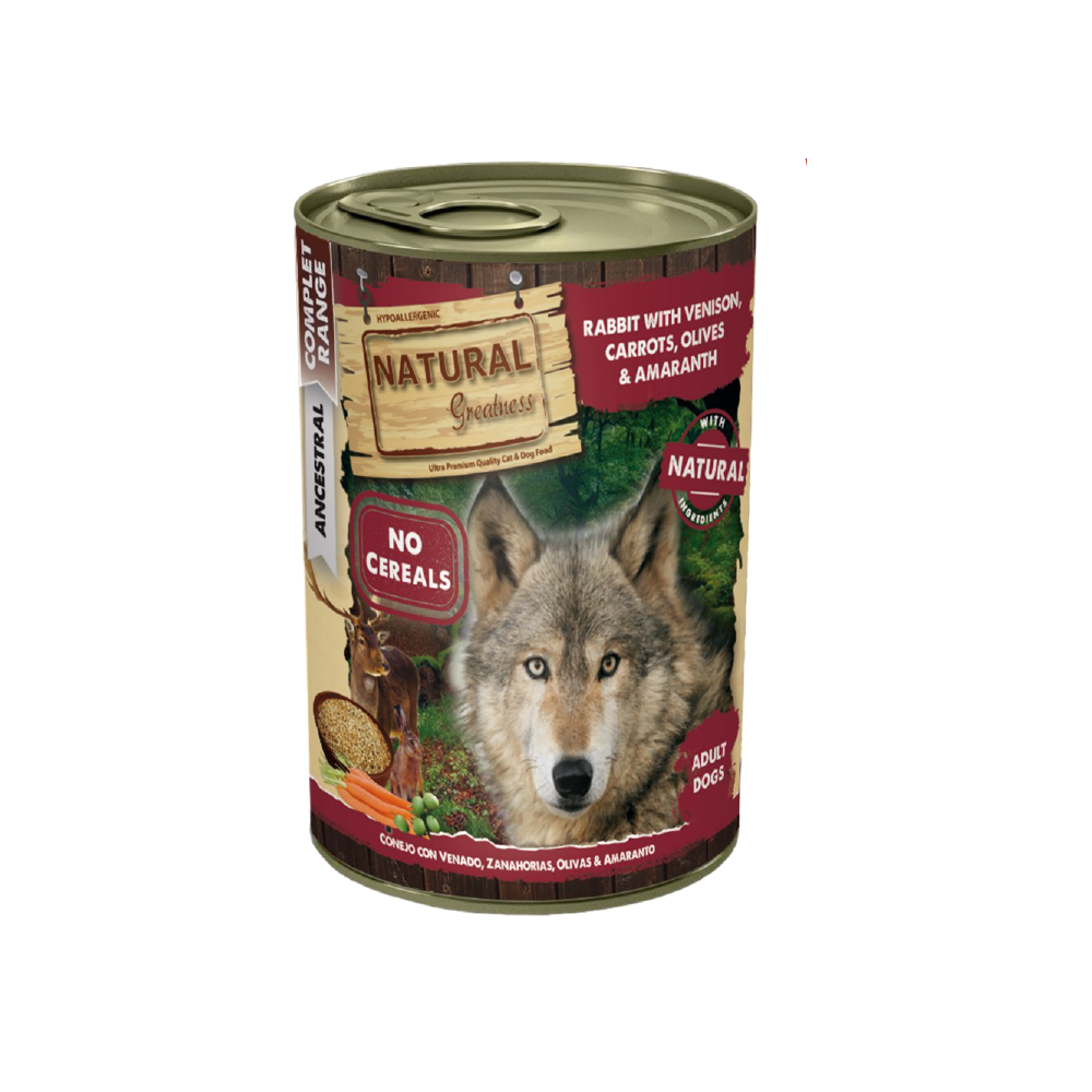 A ração húmida Natural Greatness oferece ração de qualidade premium para o seu cão. São deliciosas latas recheadas com ingredientes totalmente naturais e uma alta porcentagem de carne. Receitas completas e equilibradas que cobrem as necessidades nutricionais de cães de todas as raças e idades.
