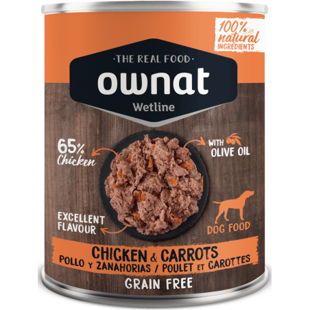Frango (65%), caldo (28,8%), cenouras (5%), minerais, azeite.