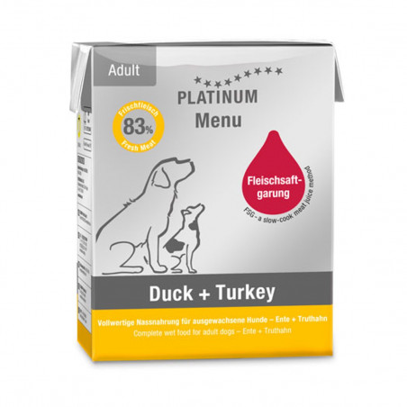 Alimento húmedo para perros de pavo y pato Platinum Tetra Adult Dog Duck + Turkey Peso 185 gr