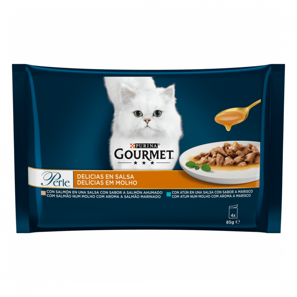 Semelhante a Purina para gatos GOURMET PERLE Delicias en Salsa Salmón y Atún