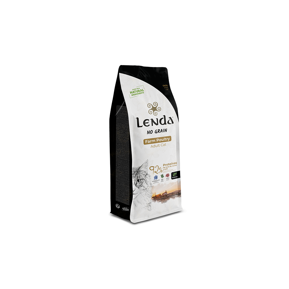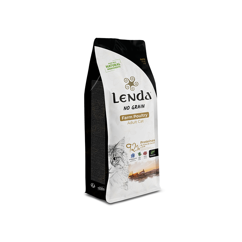 Lenda Farm Poultry é um alimento completo sem cereais para gatos adultos com um nível de atividade normal.