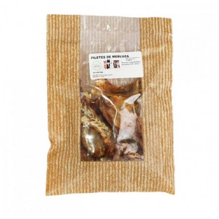 Deliciosa e estaladiça pele de pescada desidratada que, com o seu aroma a peixe, é uma alternativa perfeita de petisco hipoalergénico para os peludos mais delicados ou para os amantes do peixe.