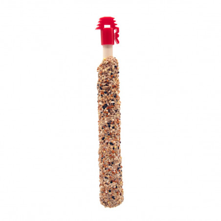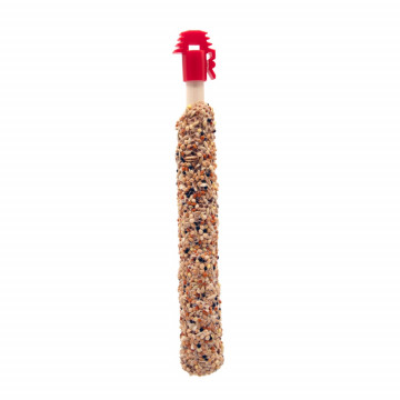 Formato 2 barras de sementes assadas de 30 gr com mistura de frutas e flores para periquitos e papagaios pequenos. Lanche sem açúcar.