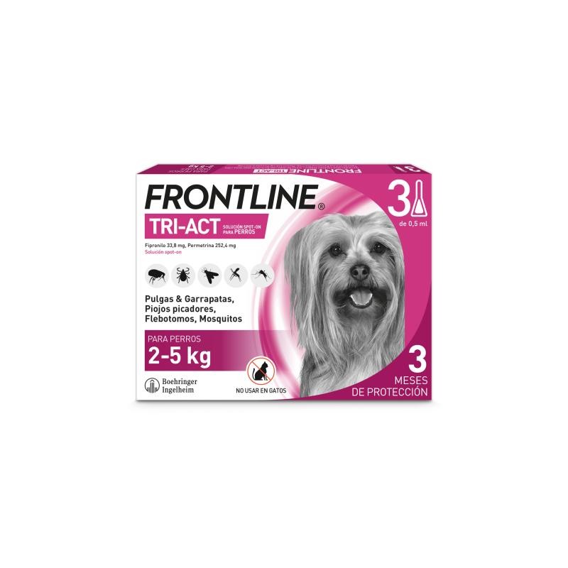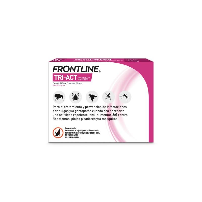 O Frontline Tri-act e a sua solução spot-on garante protecção total contra pulgas, carraças, mosquitos e moscas estáveis. Estas pipetas são indicadas para cães. A sua acção é tópica e cobre completamente o animal.