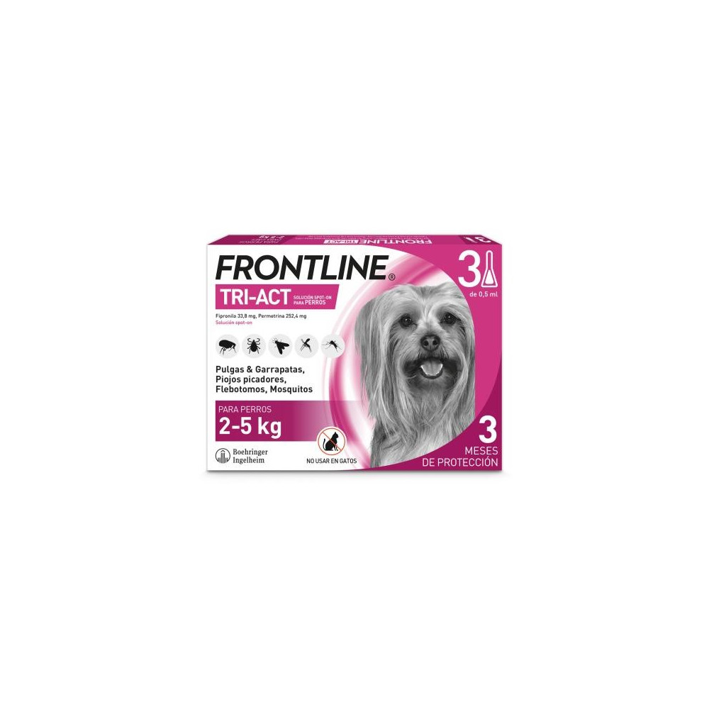 Frontline Tri-Act Spot-On Solution for Dogs é um antiparasitário para cães que actua rapidamente contra parasitas. Tem uma eficácia de 95%.