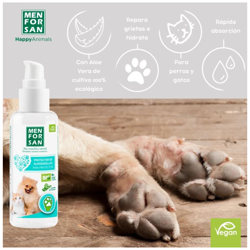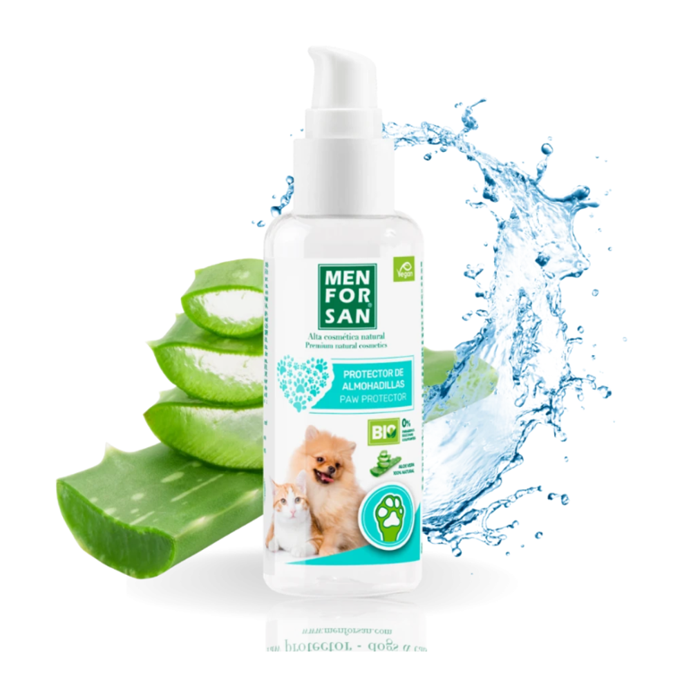 Gel protetor para as almofadas plantares para cães e gatos. O Aloe Vera 100% natural de sua composição repara rachaduras e feridas.