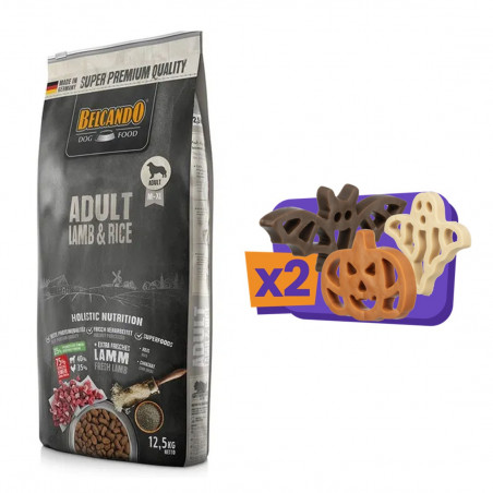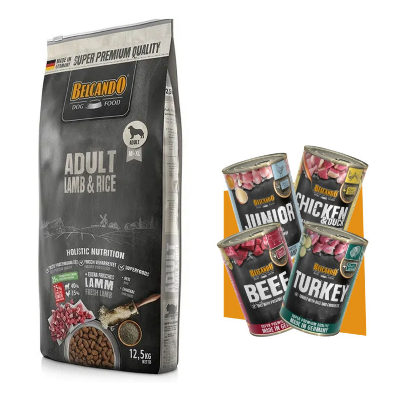 Arroz (40%); carne fresca de borrego, fígado e pulmão (total: 30 %); proteínas de aves de capoeira desidratadas com baixo teor de cinzas (12,5 %); proteínas de cordeiro, secas (10 %); farinha forrageira de aveia; semente de uva prensada para expulsão; levedura de cerveja seca; farelo de aveia; sementes de chia (1,5 %); gordura de aves de capoeira; linhaça; fígado de aves de capoeira hidrolisado; cloreto de sódio; cloreto de potássio; ervas aromáticas, secas (total: 0,2 %; folhas de urtiga, raiz de genciana, centauro menor, camomila, funcho, cominho, azevinho, yarrow, folhas de amora preta); yucca schidigera