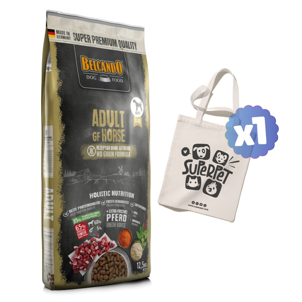 Com carne de cavalo fresca extra e ingredientes seleccionados, Belcando Adult Grain Free Horse oferece um tratamento muito especial para cães. Graças à receita sem grãos e à saborosa e exclusiva variante de carne, este alimento seco é particularmente adequado para cães sensíveis. Além disso, os ingredientes valiosos fornecem conteúdos que podem aumentar parcialmente a vitalidade e o bem-estar do cão. Por exemplo, o amaranto, que é uma alternativa valiosa aos cereais, fornece nutrientes importantes e substâncias vitais. O resultado da combinação de amaranto e krill, uma valiosa fonte de ácidos gordos ómega-3, é uma receita muito equilibrada.