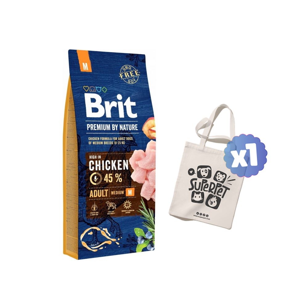 Alimento para cães adultos de raças médias, alimento à base de frango, probióticos, erva-mãe e proteína de insetos que promove um crescimento saudável