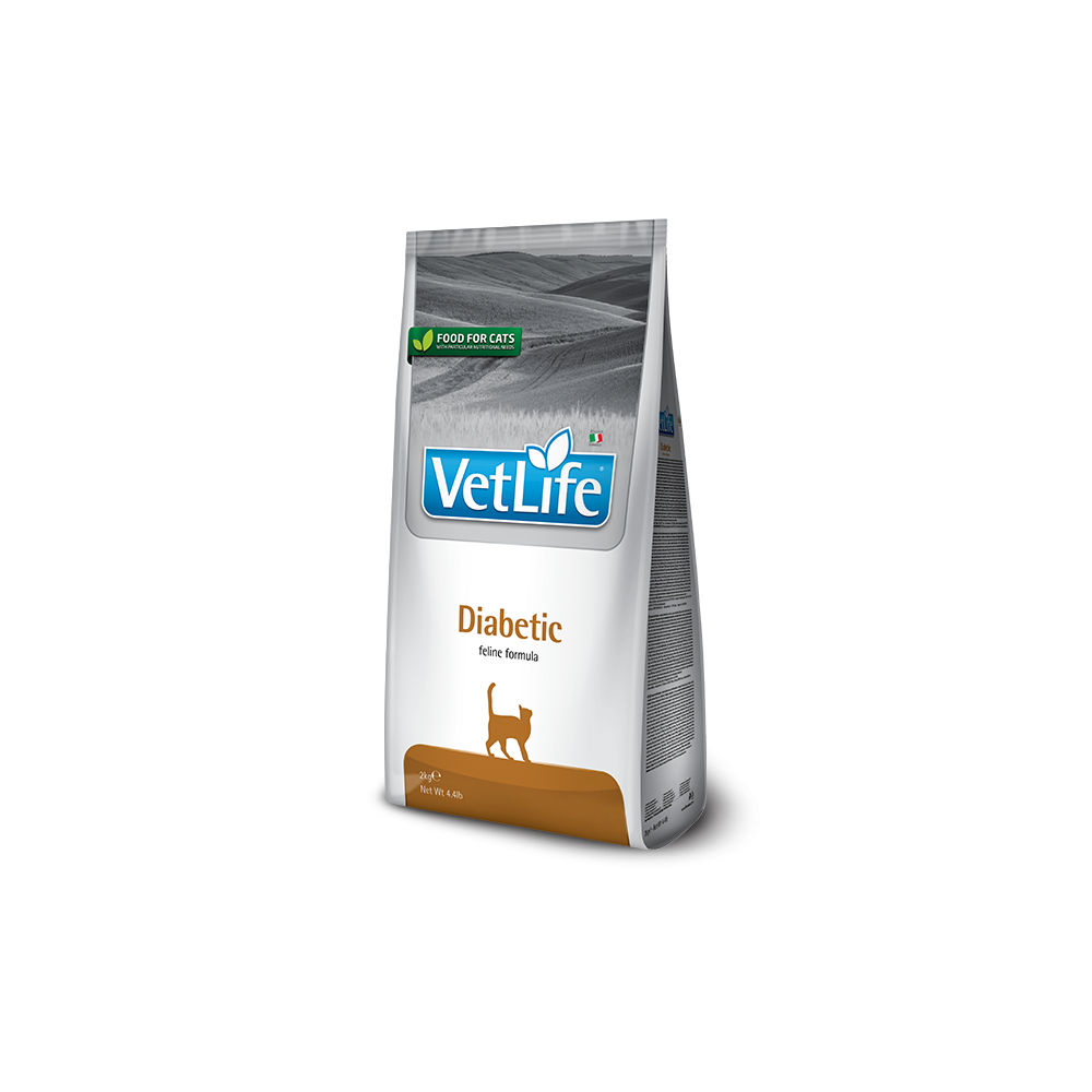 Manejo do Diabetes Mellitus. Farmina Vet Life Diabetic é um alimento dietético completo para gatos que ajuda a controlar a ingestão de glicose em caso de diabetes mellitus.