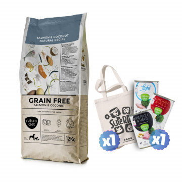 Salmão inteiro cozido ao vapor, carapau, anchova e cavala (22%)*, batata inteira (20%), óleo de coco (7%)*, ervilhas verdes*, maçã*, flocos de batata, levedura de cerveja, fécula de batata, óleo de canola, batata doce (3%)*, lentilhas vermelhas (3%)*, óleo de salmão*. PRÓ-SAÚDE (1%): cenoura desidratada, tomate desidratado, rosa da Índia desidratada, alfafa desidratada, algas marinhas desidratadas, extracto de sementes de dentes-de-leão desidratado, brócolos desidratados, extracto de sementes de chá verde, camomila desidratada, extracto de citrinos, óleo de borragem, extracto de sementes de orégãos, extracto de sementes de cardo de leite, mirtilos, L-carnitina, taurina, FOS, MOS, probióticos, PROJOINT COMPLEX (0. 2%): extracto de mexilhão lábio verde, extracto de krill e caldo de osso (fontes naturais de colagénio, condroitina e glucosamina), COMPLEXO PROSAFE (0,03%): alecrim, cravinho, toranja, curcuma e azeite de oliva.