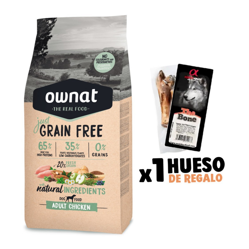 Carne desidratada (34%), frango fresco * (min. 20% antes da extrusão), ervilhas inteiras *, gordura de ave (preservada com antioxidantes naturais), raízes de mandioca *, batata desidratada *, vagem de alfarroba *, frango com proteína hidrolisada, peixe desidratado , levedura de cerveja *, polpa de beterraba, maçã fresca * (1%), semente de linho *, alga desidratada *, sal-gema *, óleo de peixe (preservado com antioxidantes naturais), oligossacarídeos de fruto e manana, alfafa desidratada *, glucosamina, condroitina, yucca schidigera, mirtilos *, tomilho *, flor de camomila *, erva-doce *, equinácea *, chá verde *. * Ingredientes naturais.