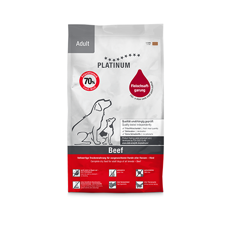Platinum Natural Beef and Potato utiliza apenas carnes próprias para consumo humano . Pedaços inteiros de carne são picados, misturados com os demais ingredientes e cozidos no próprio suco, a uma temperatura nunca superior a 95º C. Vitaminas e outros nutrientes sensíveis ao calor são adicionados quando o produto está em temperatura ambiente para garantir sua estabilidade e disponibilidade ao animal.