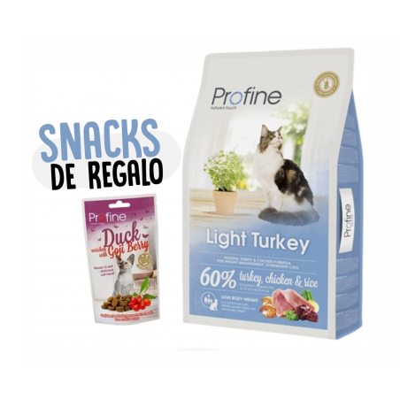 Profine Cat Light é uma receita natural à base de peru e arroz, especialmente indicada para gatos com problemas de excesso de peso.