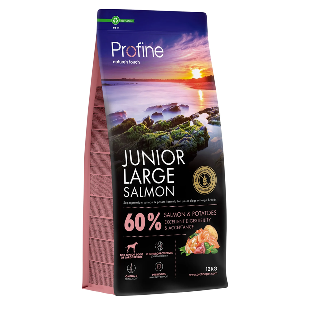 A comida natural de salmão e batata para cachorros e cães jovens de raças grandes.
