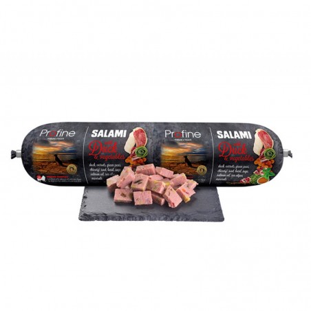 Profine Pato Sausage 800 g é um alimento completo sem grãos para cães adultos, que pode ser misturado com ração seca para estimular o apetite do seu animal de estimação ou usado como lanche.