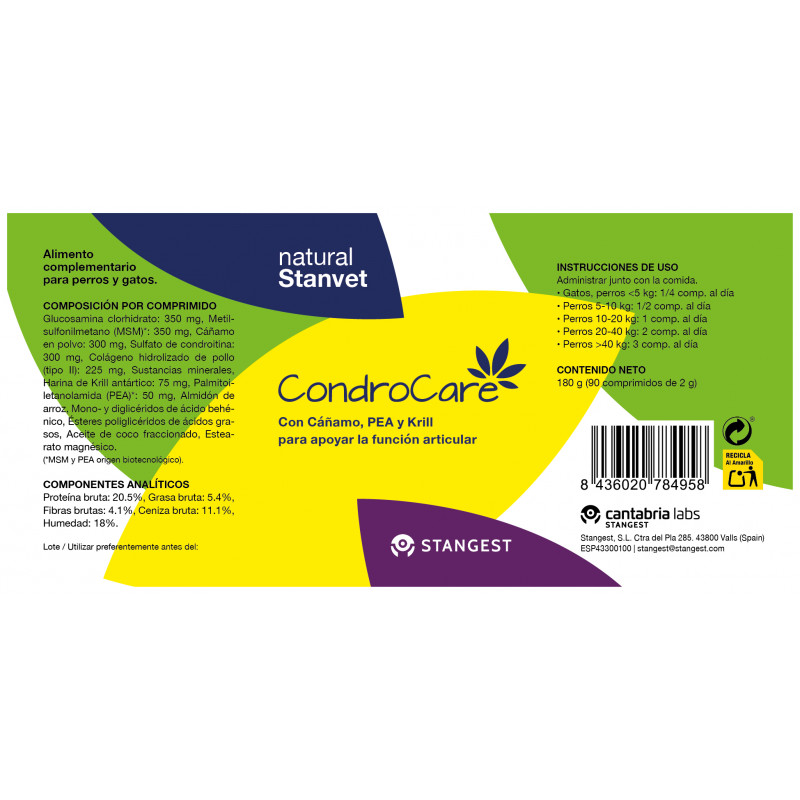 Stangest Condrocare para Perros y Gatos CAPACIDAD 90 uds
