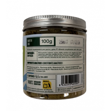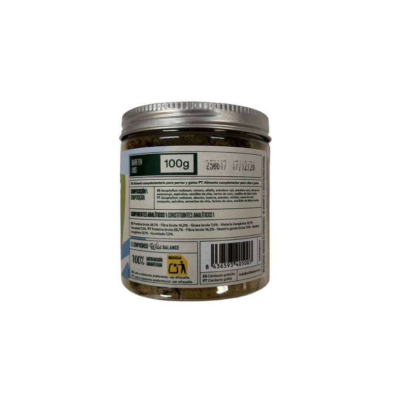 Wild Balance Organic Spirulina é um suplemento 100% natural rico em proteínas. É conhecido por seus efeitos antiinflamatórios e antioxidantes. Fornece um grande suprimento de energia e ajuda cães e gatos a recuperar a vitalidade. Recomendado para cães e gatos.