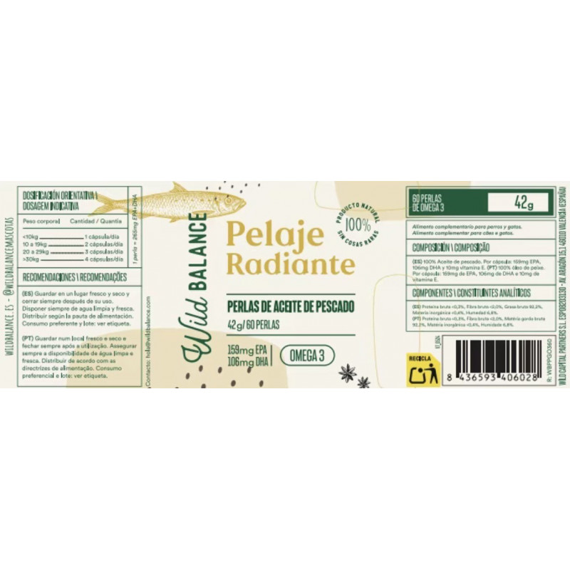 Wild Balance PERLAS OMEGA 3 para perros y gatos Litros 42 ml
